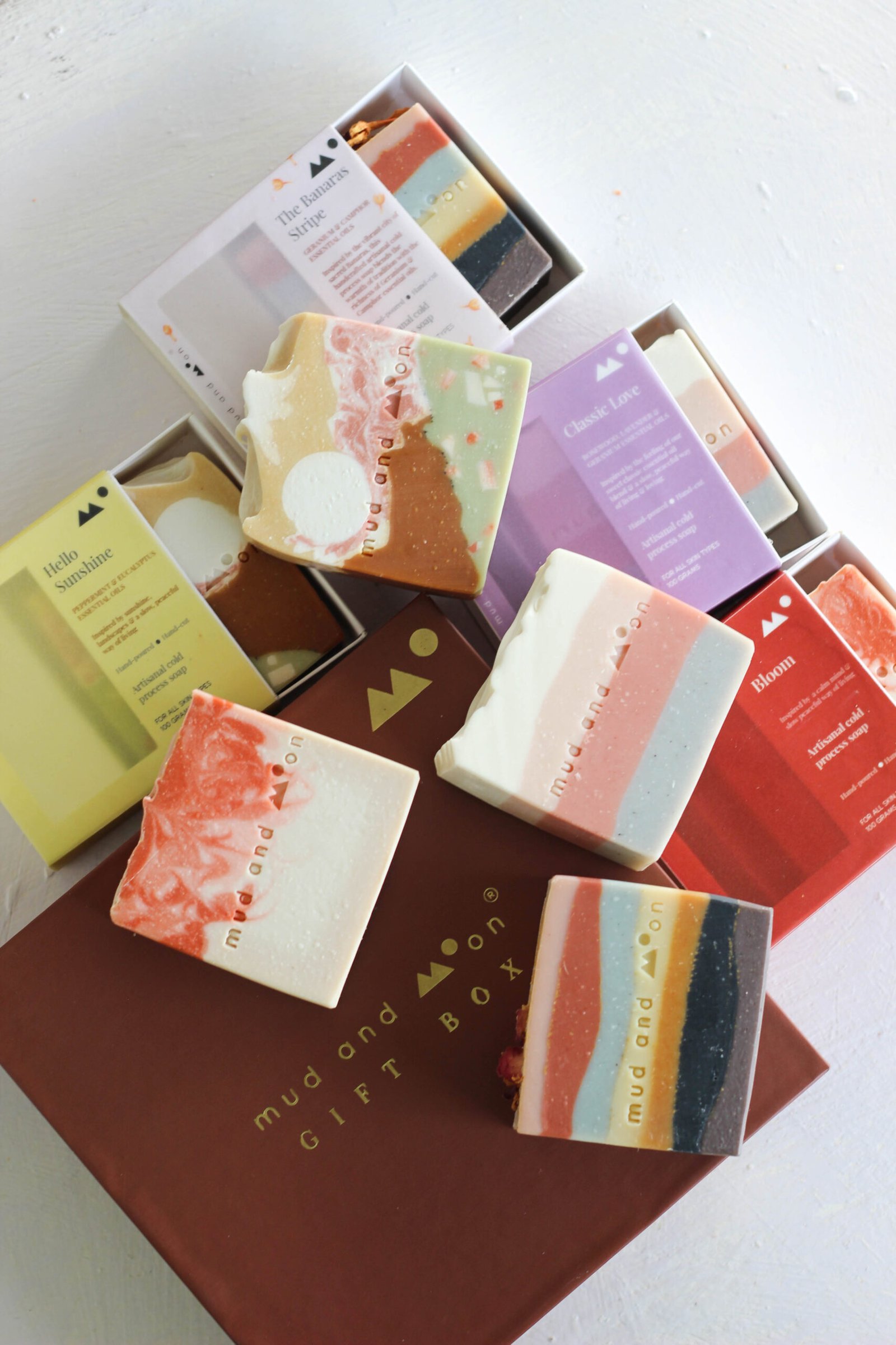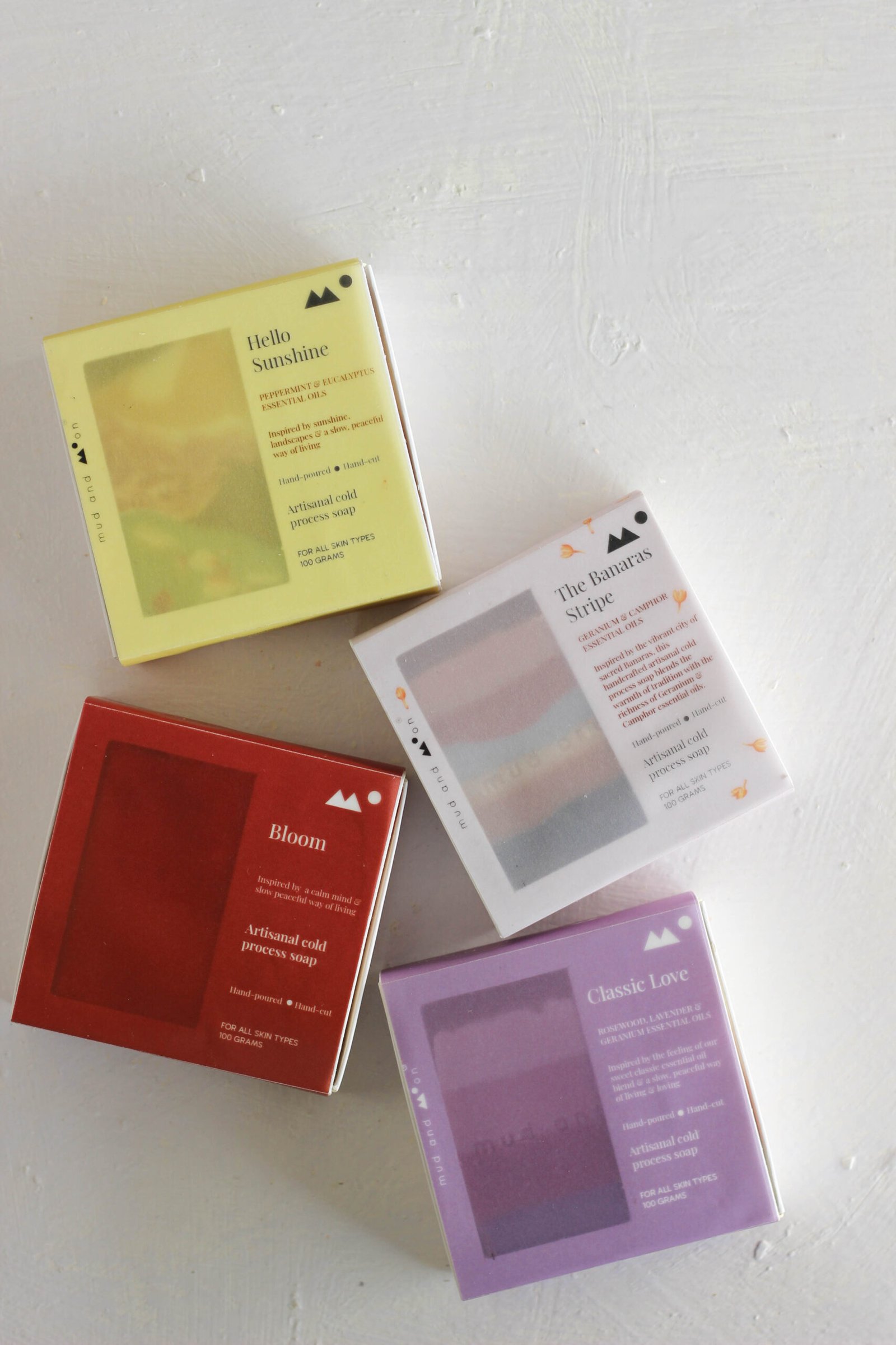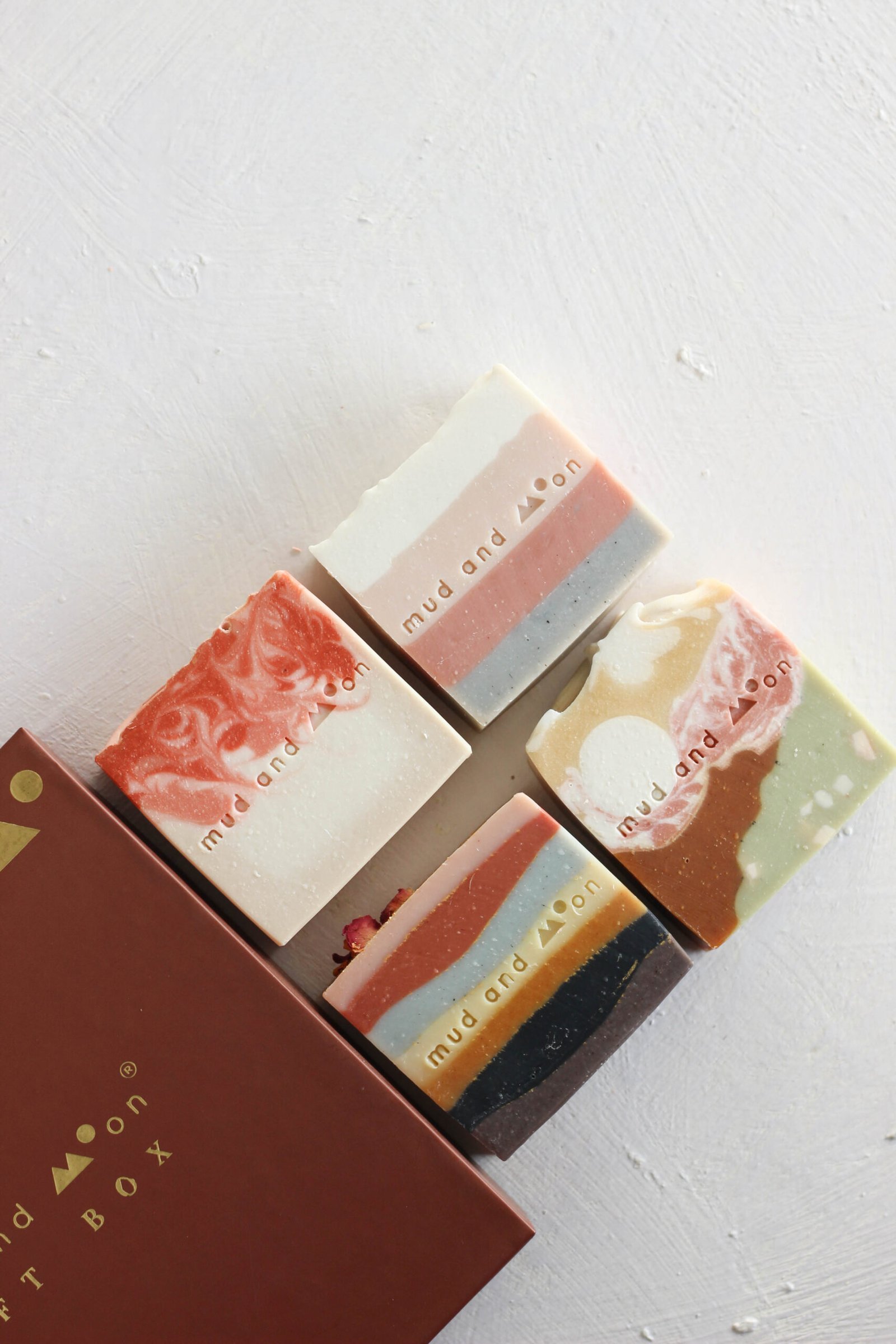 Mud and moon soaps are made by hand in small batches to ensure quality. Products may show slight variance in design & colour from photos due to their handmade nature. Due to the organic nature of process we follow to make our soaps, each soap will be unique in design.